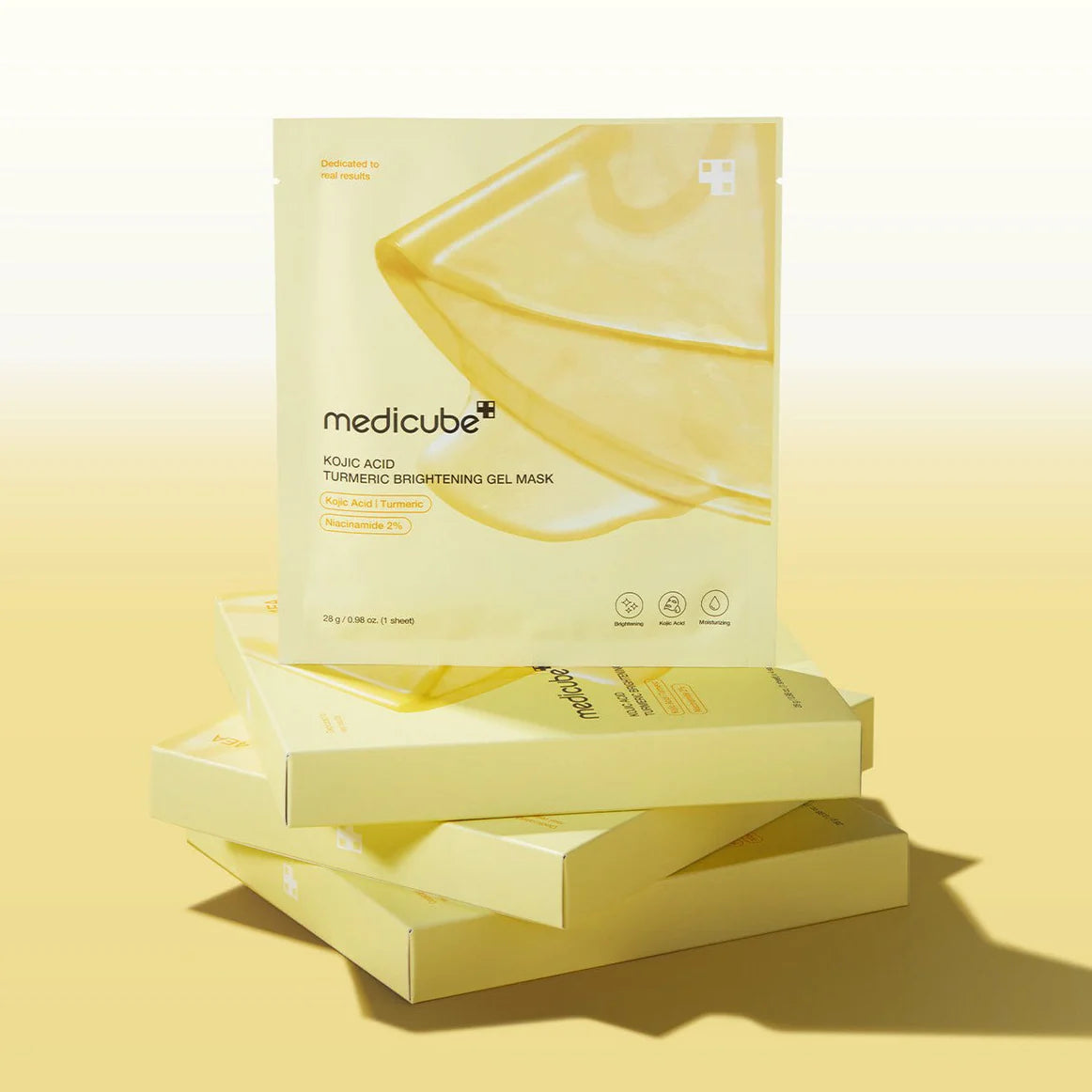 The Medicube Kojic Acid Turmeric Brightening Gel Mask is a hydrogel sheet mask crafted to boost skin clarity and restore luminosity. Its comfortable fit hugs the skin, gradually changing in texture to indicate complete absorption of the brightening essence.